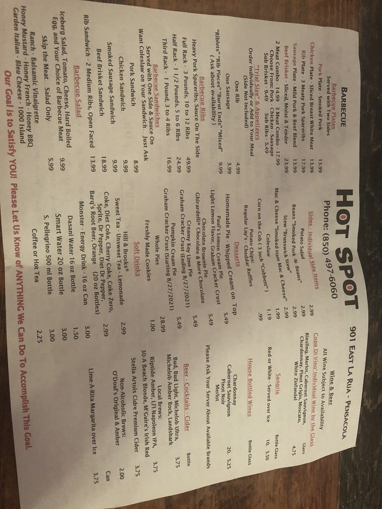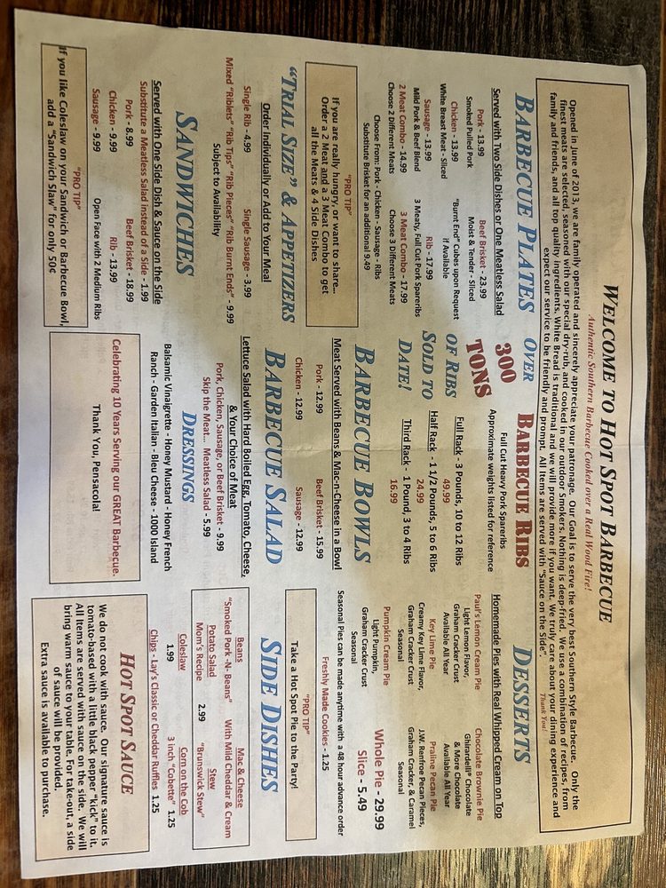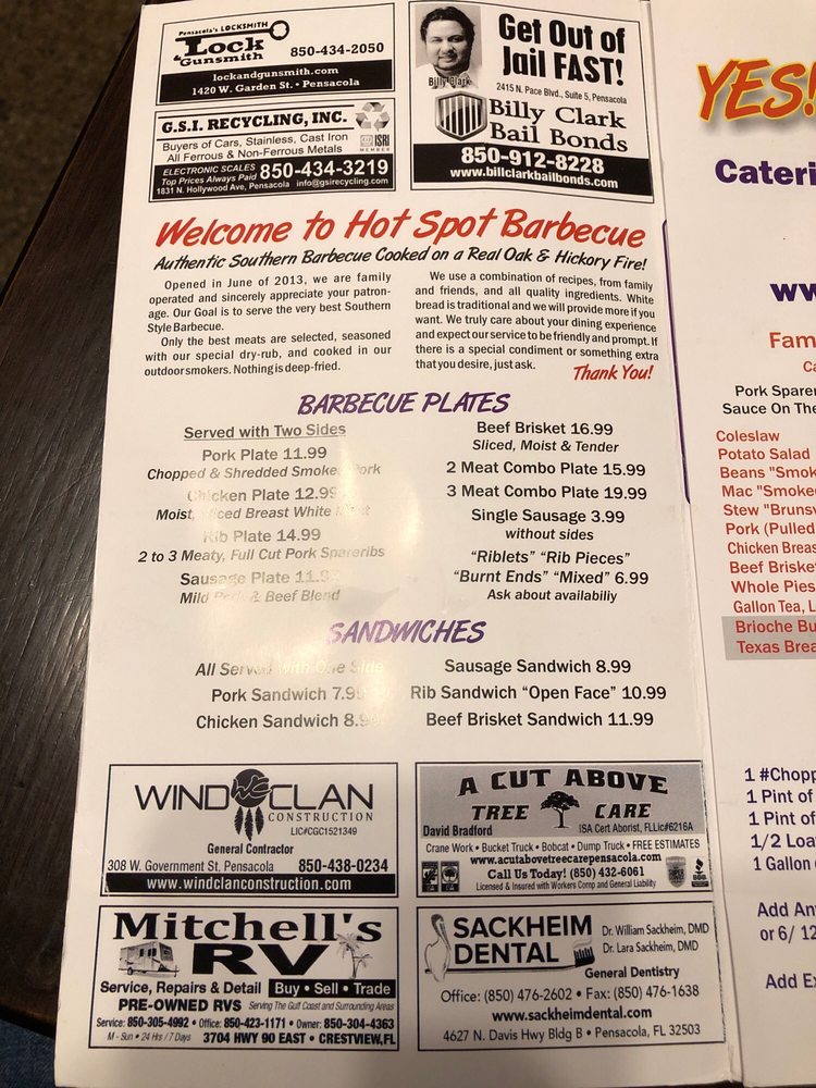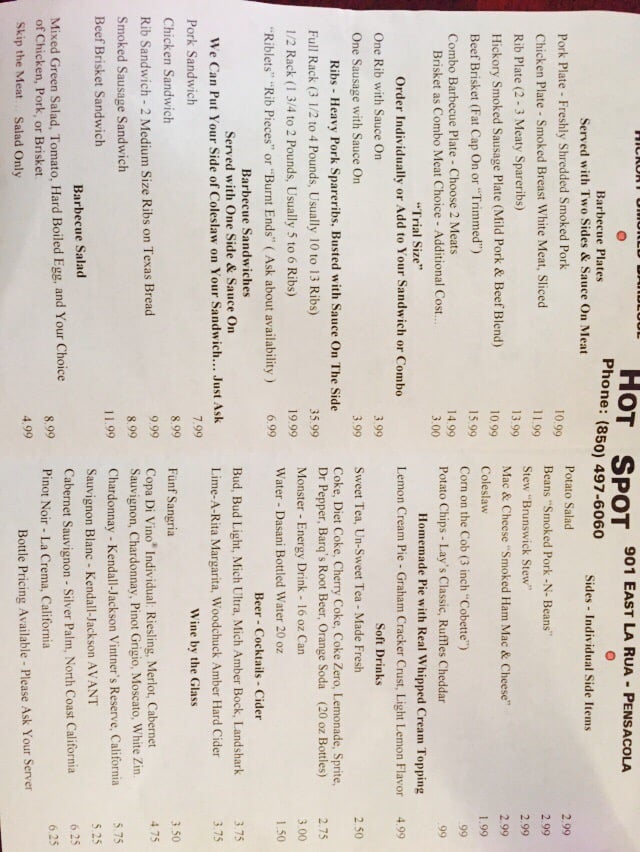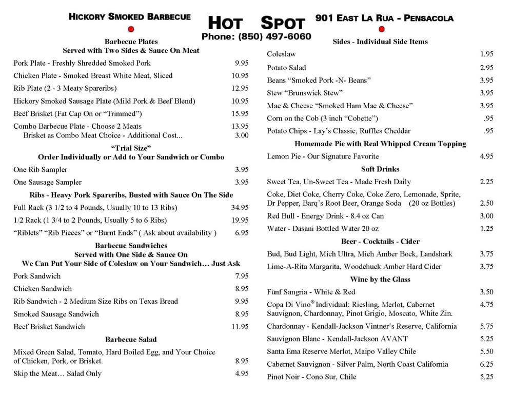 Welcome to Hot Spot Barbecue, your go-to destination for mouthwatering barbecue in Pensacola, FL! With a fantastic lineup of offerings, the menu showcases tender ribs, succulent pulled pork, and perfectly seasoned brisket that melts in your mouth. Start your meal with delicious appetizers like riblets and rib tips, or indulge in a barbecued pulled pork sandwich that’s been highly praised by our delighted customers.